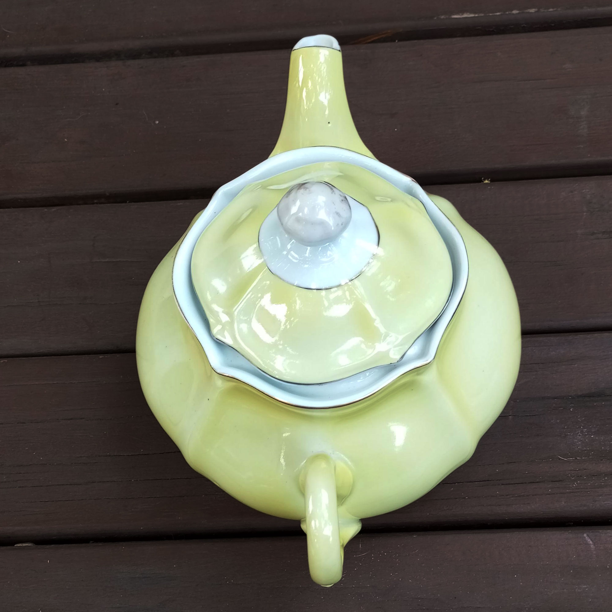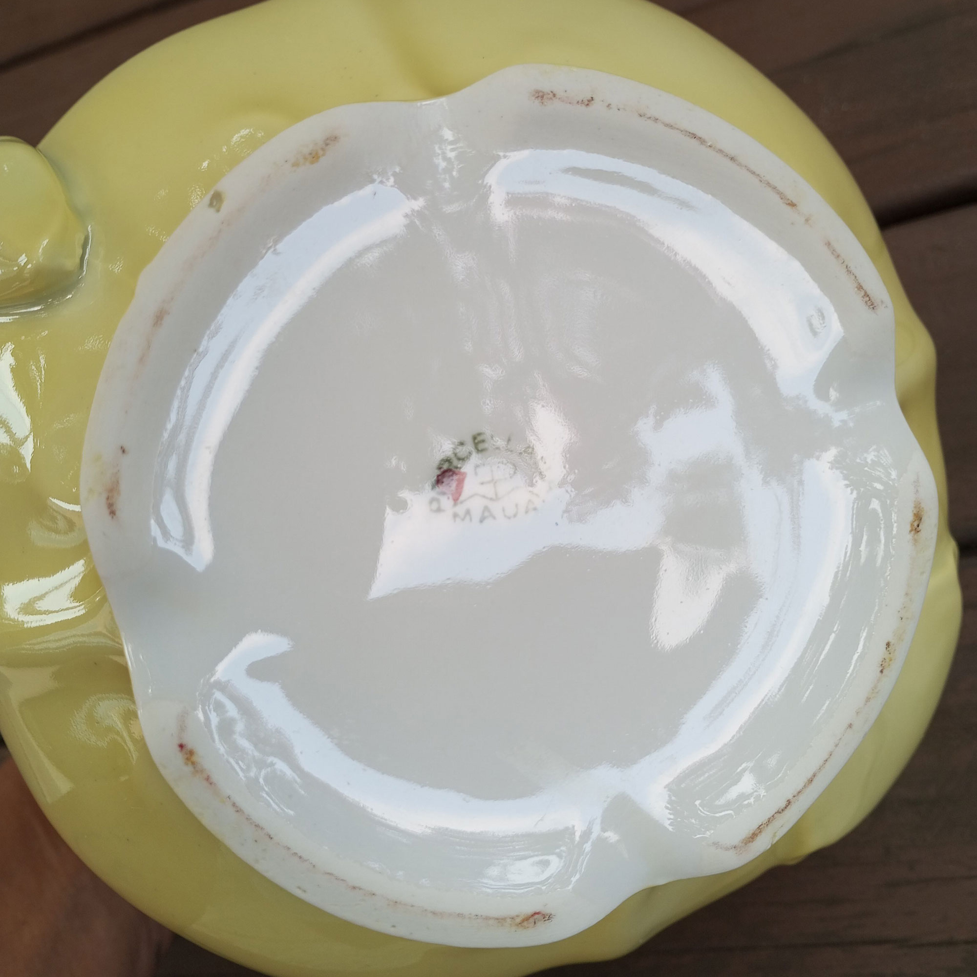 Encantador bule para chá em porcelana nacional da renomada marca Mauá, em estado de conservação excelente. Apresenta um tom de amarelo claro que transmite uma sensação de suavidade. Fabricado na década de 1950, suas dimensões são 23 cm de largura por 16 cm de altura por 16 cm de profundidade, com um peso de 580 g.